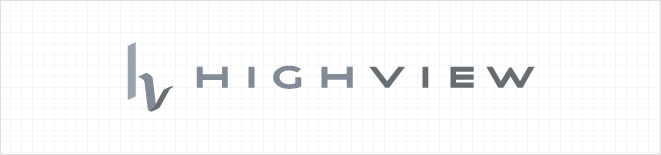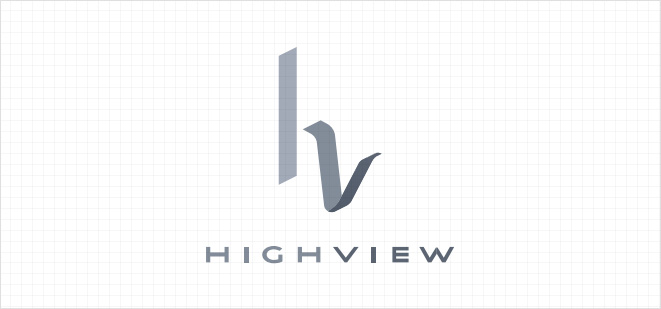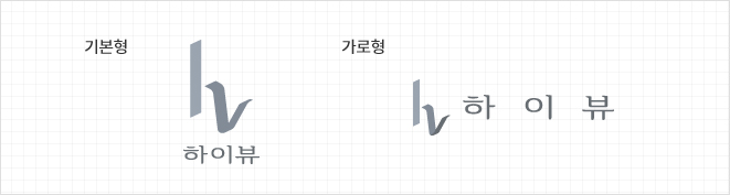High의'H'd와 'V'자가 하나의 스컬쳐로 형상화된 로고이다. 위에서 아래로 보아도, 아래서 위로 보아도 입체적으로 보여지는 H와V의 형태는 하이뷰의 중의적인 의미를 담고 있다. 낮은 채도의 컬러감과 넓직한 워드 마크는 하이뷰의 견고함을 의미한다.